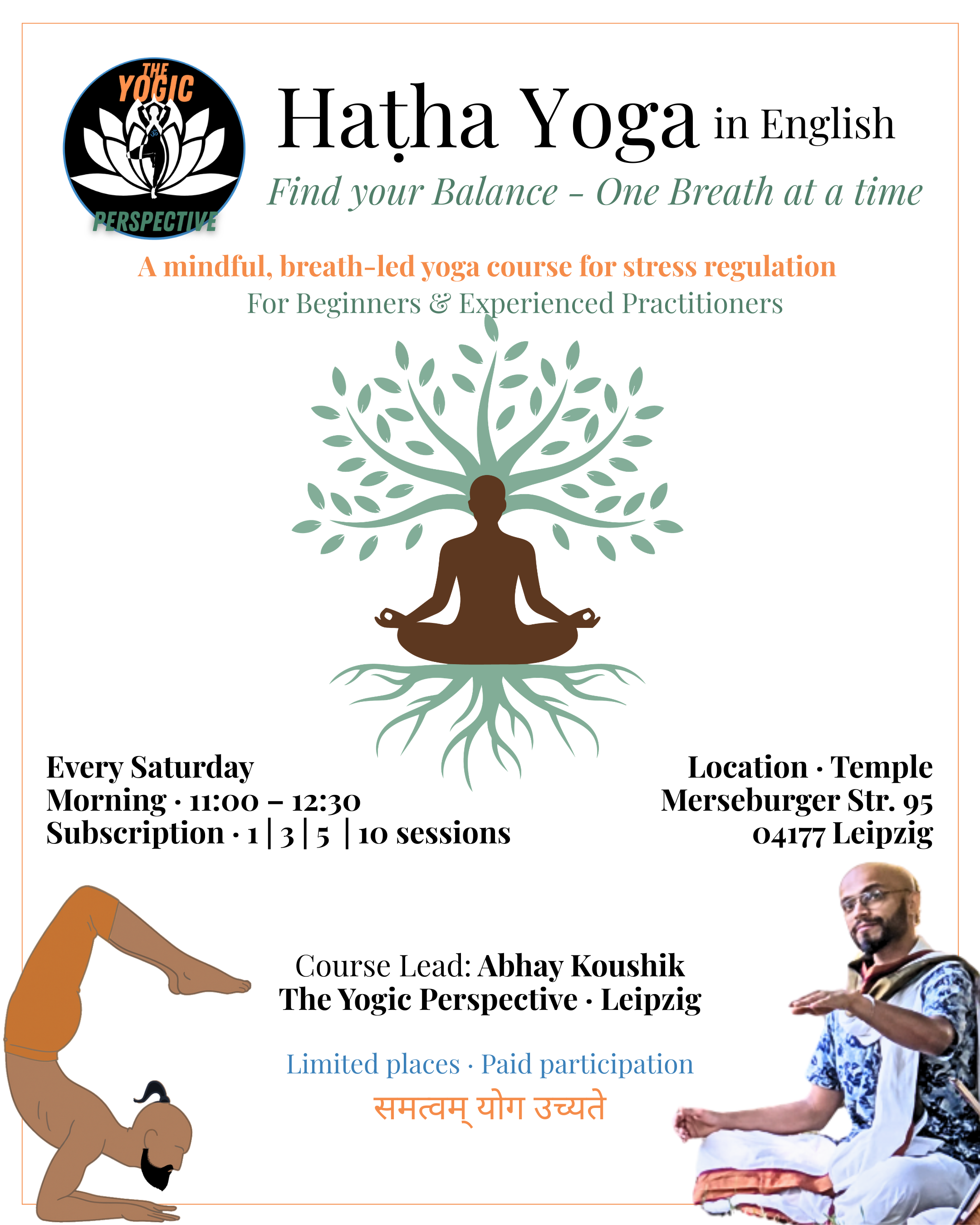 The course is in English with support also available in German. Come join us to feel the Haṭha in your Yoga!